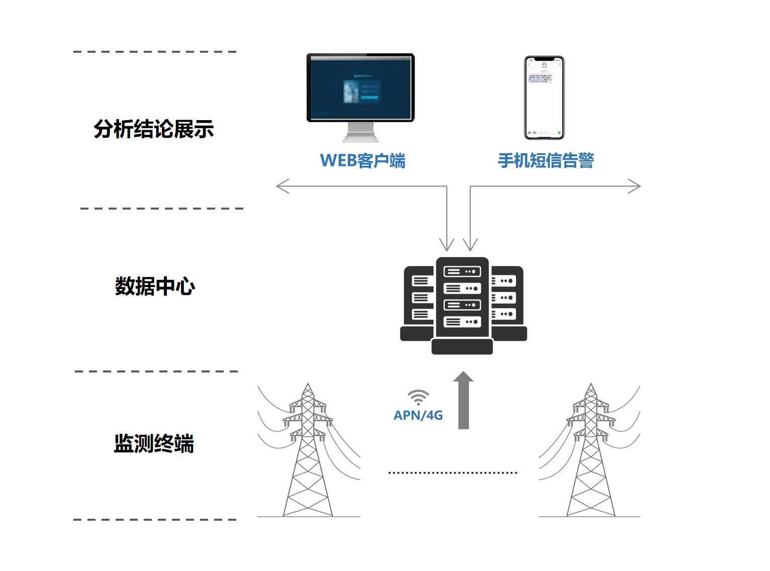 監(jiān)測終端每間隔20~30公里安裝1組,直接在高壓側就近采集故障時刻點附近的工頻故障信號和行波故障信號,自動、實時、在線感知線路運行數(shù)據(jù),通過數(shù)據(jù)中心的綜合分析,可以提供故障點位置的精確信息。故障區(qū)間可靠性>99%,故障定位平均誤差≤300m。